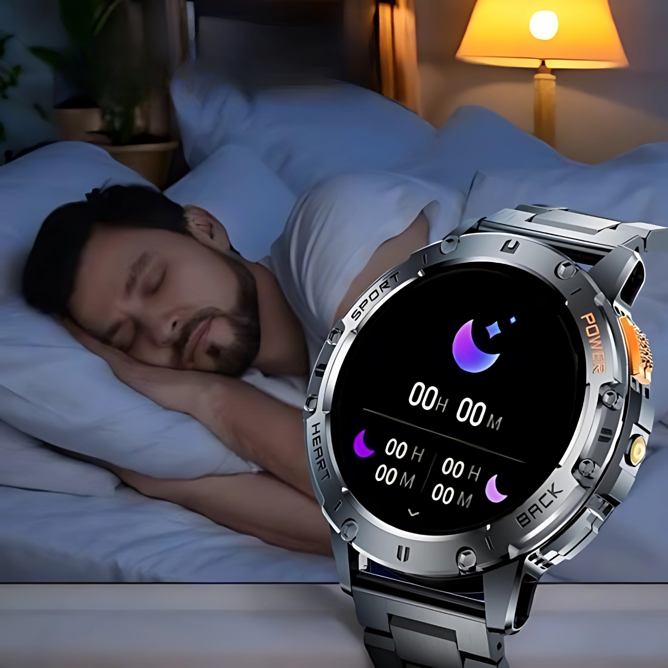 De smartwatch volgt automatisch je slaapfases (licht, diep, wakker worden) voor een betere slaapkwaliteit.