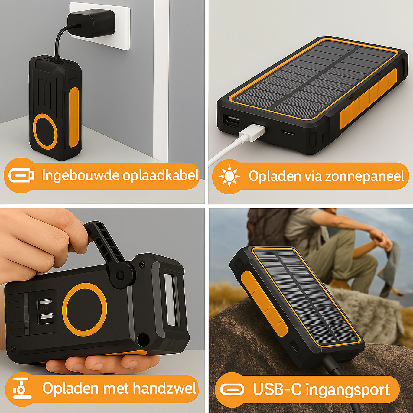 | Handmatige dynamo-oplader | ✔ | ✘ |