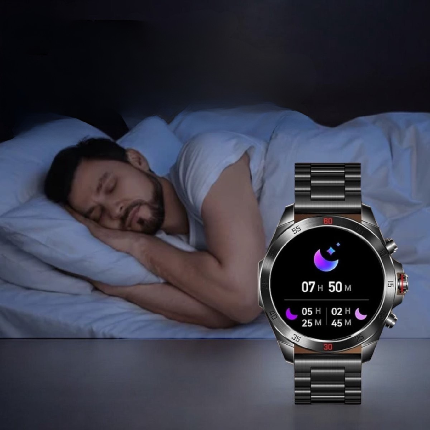 De smartwatch volgt automatisch je slaapfases (licht, diep, wakker worden) voor een betere slaapkwaliteit.